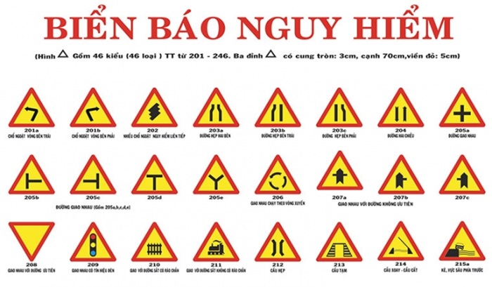 Biển báo giao thông đường bộ nhóm này có chức năng cảnh báo các tình huống nguy hiểm có thể xảy ra, từ đó giúp người điều khiển phương tiện chủ động phòng tránh tai nạn.