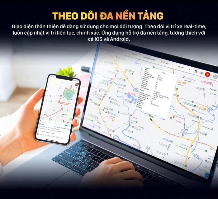 Dữ liệu từ thiết bị định vị hợp chuẩn sẽ được đồng bộ trực tiếp với phần mềm quản lý và ứng dụng di động của Vntrack. Nhà quản lý có thể dễ dàng theo dõi trạng thái xe, hành trình, mức tiêu hao nhiên liệu ngay trên điện thoại, máy tính hoặc tablet. Hệ thống cũng tự động gửi cảnh báo khi phương tiện vượt quá tốc độ, dừng đỗ bất thường hoặc đi sai lộ trình.