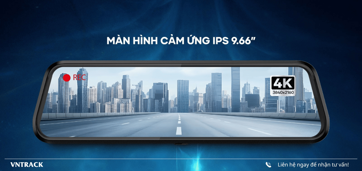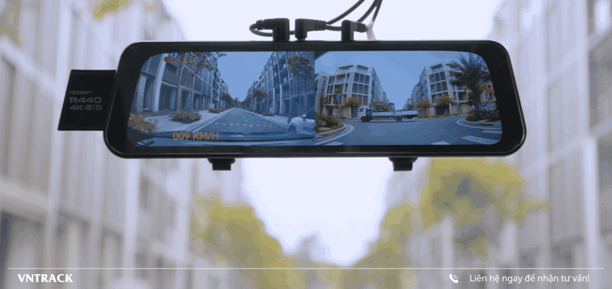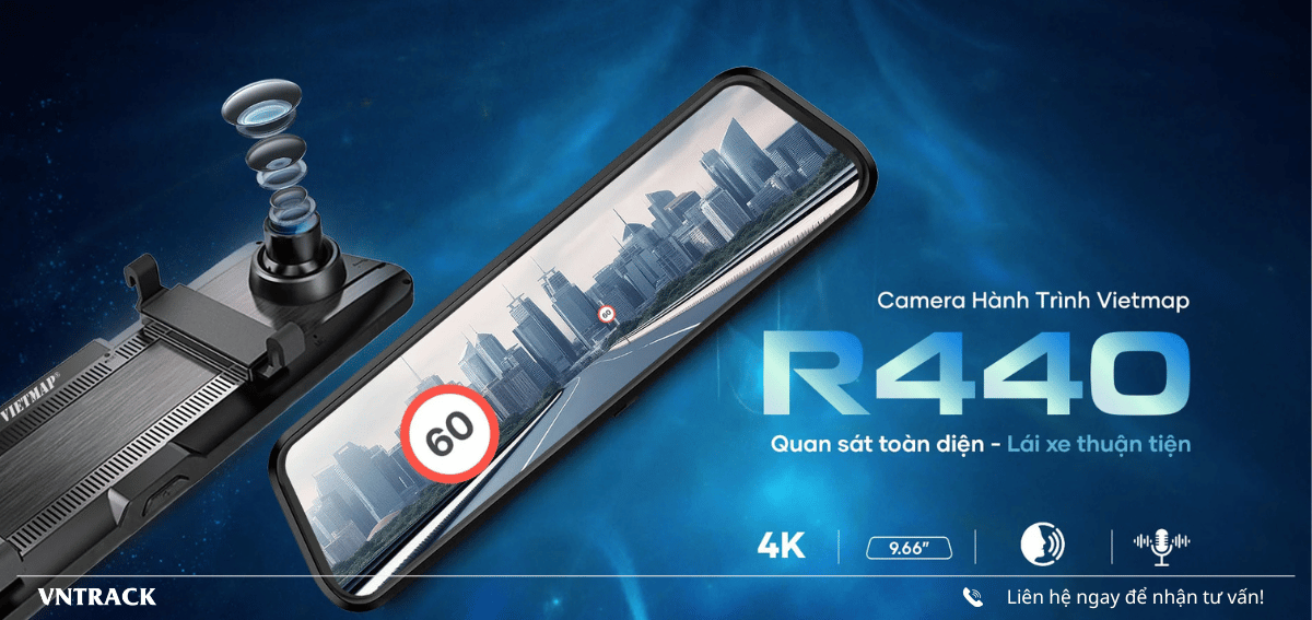 Camera hành trình Màn Hình Gương VIETMAP R440 với màn hình cảm ứng IPS tràn viền 9.66 inch, ghi hình với độ phân giải siêu nét 4K và Full HD đóng vai trò gương chiếu hậu. Sản phẩm giúp hiển thị toàn cảnh phía sau vô cùng rõ ràng, hỗ trợ lùi xe an toàn dưới mọi điều kiện thời tiết.