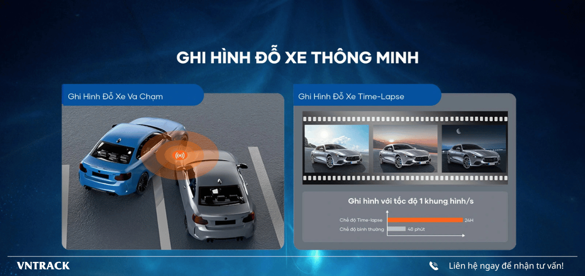 🔰 Ghi hình đỗ xe: Ghi hình Time-lapse 24/24