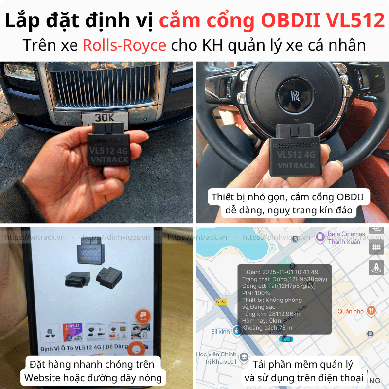 Lắp đặt định vị cắm cổng OBDII VL512