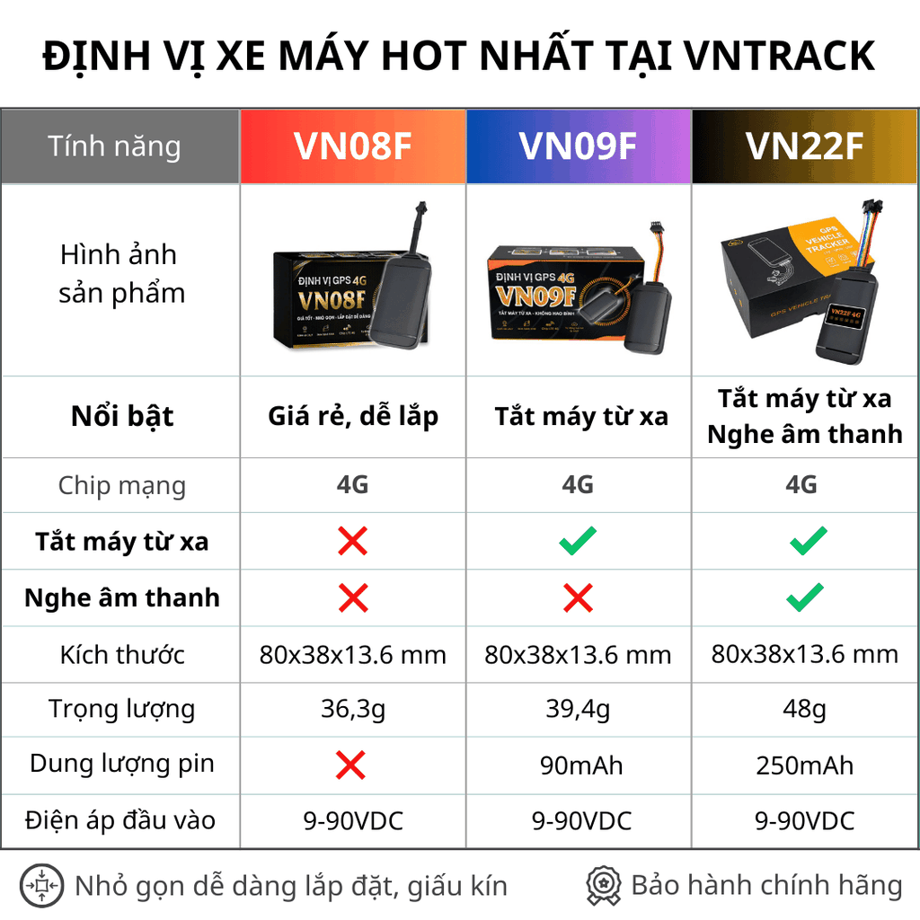 Mua ngay Định Vị Xe Máy, Ô Tô VN09F 4G chính hãng, giá rẻ tại Vntrack
