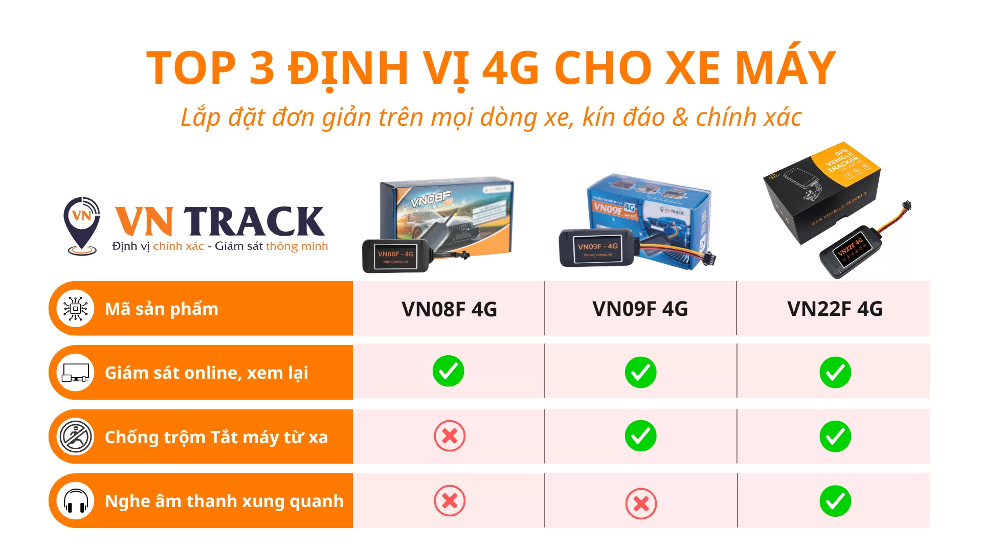 Khi đến với Vntrack, bạn sẽ bắt gặp rất nhiều sản phẩm định vị xe máy Đà Nẵng với nhiều mức giá khác nhau thế nhưng hai mẫu sản phẩm được nhiều người tin dùng và bán chạy nhất là VN22F 4G và VN602 4G. Hai mẫu này có gì nổi bật, hãy cùng Vntrack tìm hiểu nhé!