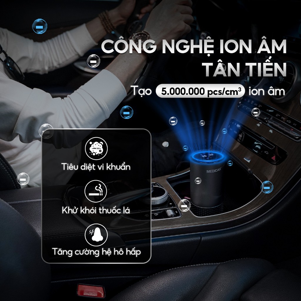 Nhiều dòng máy lọc không khí hiện nay được trang bị màng lọc HEPA và hệ thống ion âm có khả năng loại bỏ bụi mịn PM2.5, vi khuẩn, virus, phấn hoa và lông thú cưng – những tác nhân gây dị ứng phổ biến trong môi trường kín như xe ô tô.